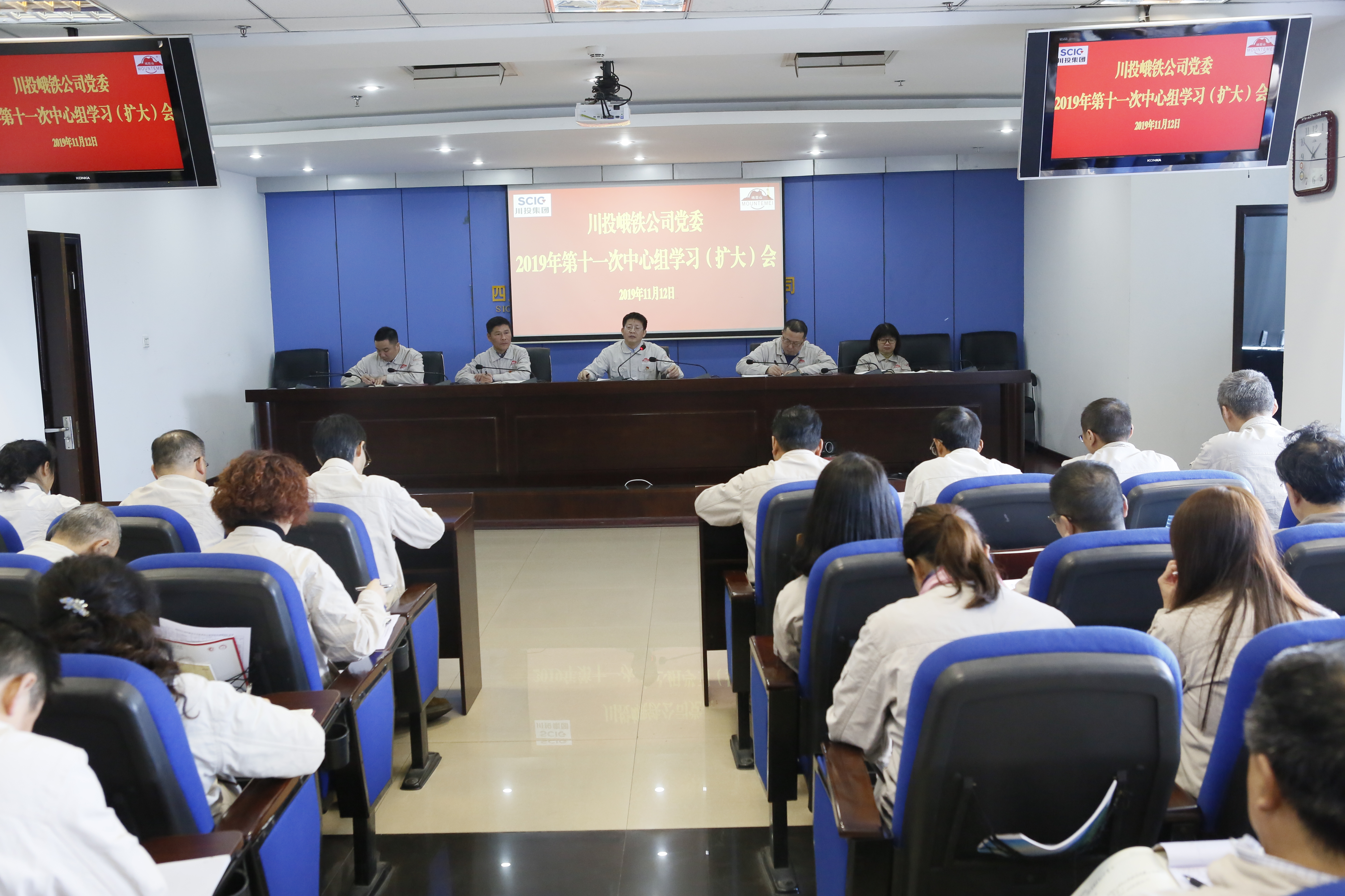 11月12日,川投峨鐵公司黨委在1011會(huì)議室召開2019年第十一次理論學(xué)習(xí)中心組學(xué)習(xí)(擴(kuò)大)會(huì),專題傳達(dá)學(xué)習(xí)黨的十九屆四中全會(huì)精神,公司在家領(lǐng)導(dǎo)、后備及以上中層管理人員共54人參加。