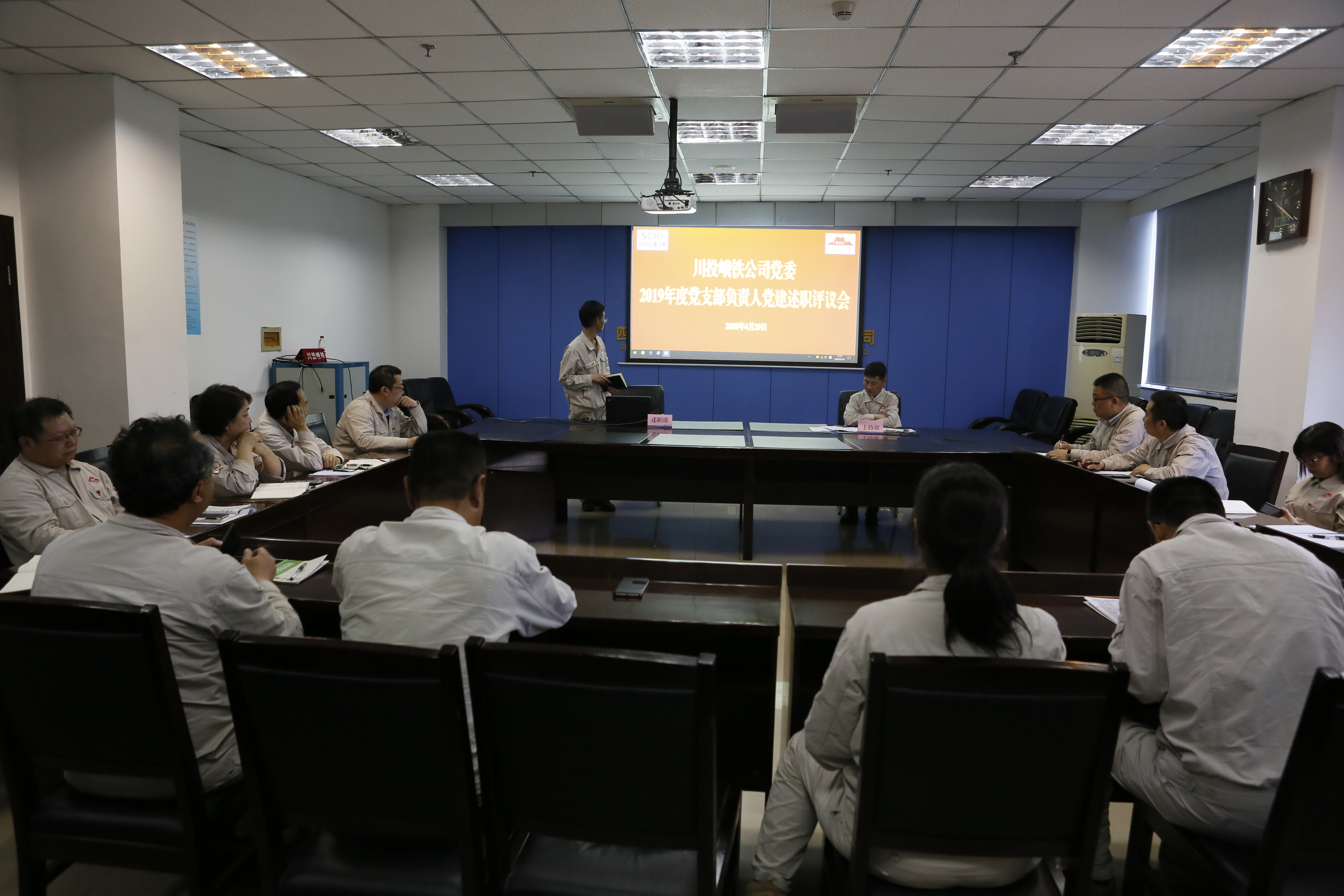 4月29日,川投峨鐵公司黨委在908會(huì)議室召開2019年度黨支部負(fù)責(zé)人抓黨建專項(xiàng)述職評(píng)議會(huì)議,2019年履職滿一年的6名黨支部負(fù)責(zé)人作現(xiàn)場(chǎng)述職。在家公司領(lǐng)導(dǎo)、相關(guān)職能部門負(fù)責(zé)人以及其他未述職黨支部負(fù)責(zé)人參加,公司黨委副書記、紀(jì)委書記、工會(huì)主席余華偉主持評(píng)議會(huì)。