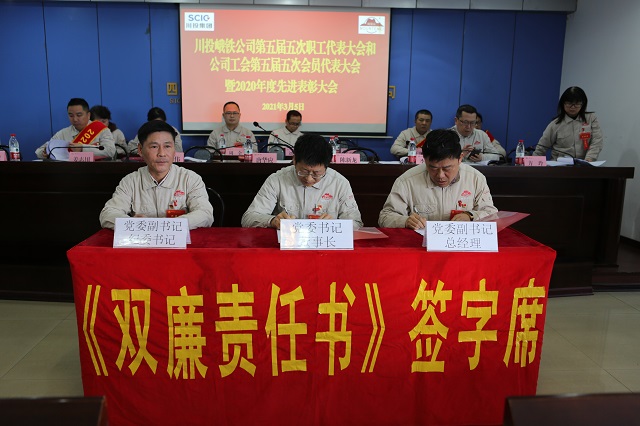 3月4日下午和3月5日上午,各分工會(huì)(代表團(tuán))分別召開分工會(huì)職工代表、會(huì)員代表會(huì)議,審議職代會(huì)、會(huì)員代表大會(huì)報(bào)告并分別提出了審議意見。3月5日15:00,在職代會(huì)、會(huì)員代表大會(huì)復(fù)會(huì)上,公司黨委副書記、總經(jīng)理陳新龍宣布了各分工會(huì)對大會(huì)議案審議結(jié)果的報(bào)告;隨后,公司舉行了雙廉責(zé)任書、安全責(zé)任書、各類集體合同的簽字儀式,大會(huì)還對獲得2020年度先進(jìn)集體和先進(jìn)個(gè)人進(jìn)行表彰。