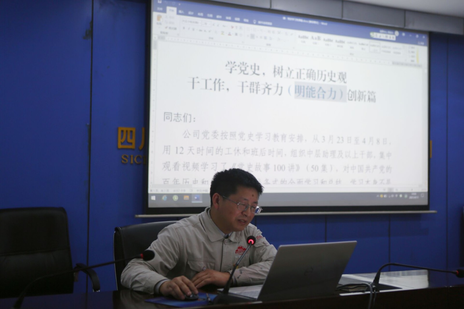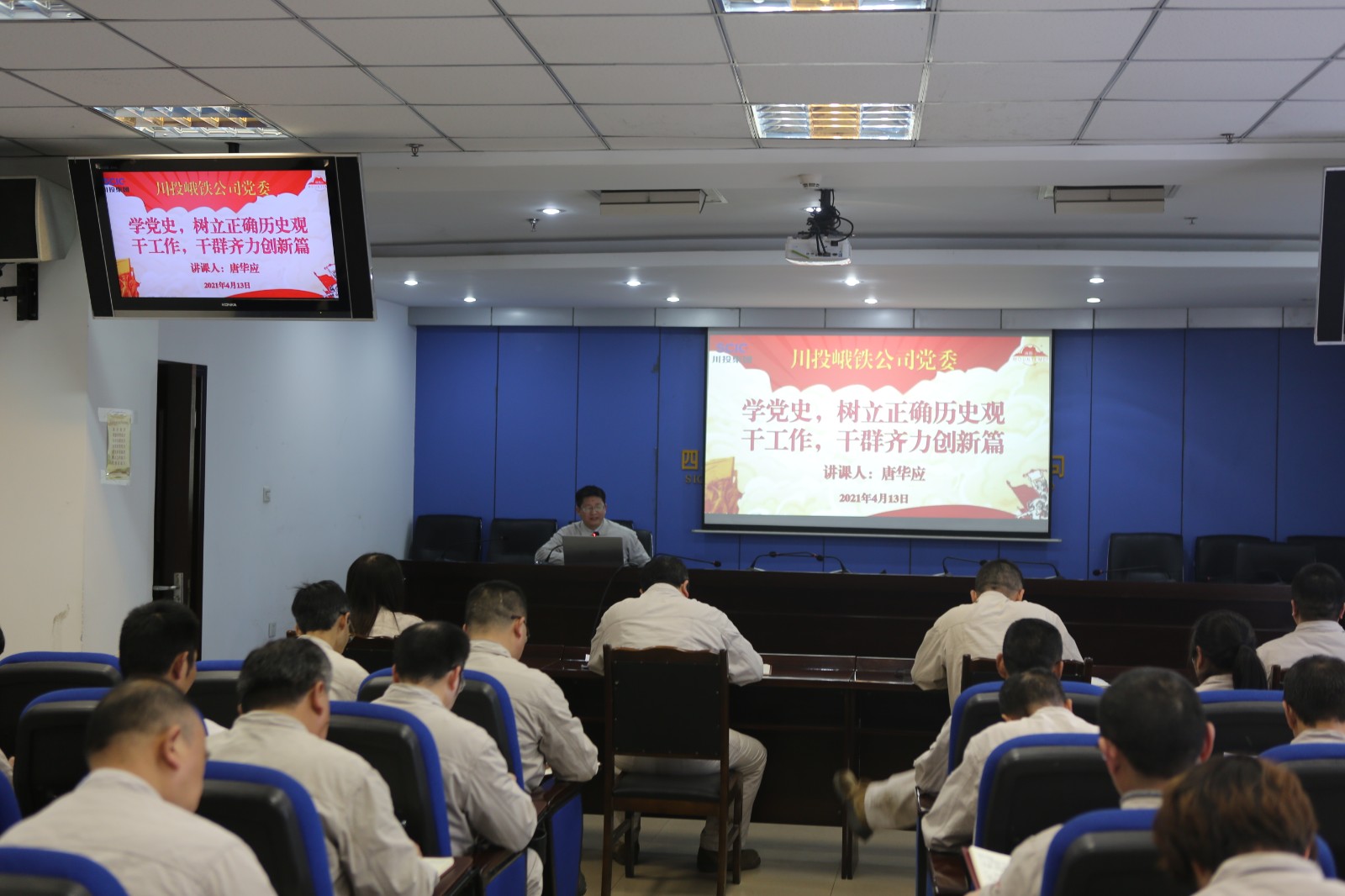 4月13日,川投峨鐵公司黨委書記、董事長唐華應(yīng)同志以《學(xué)黨史、樹立正確歷史觀,干工作、干群齊力創(chuàng)新篇》為題,為全體黨員干部上了一堂生動精彩、凝心聚力的黨課,這是公司黨委集中組織觀看《黨史故事100講》后的首次黨課。