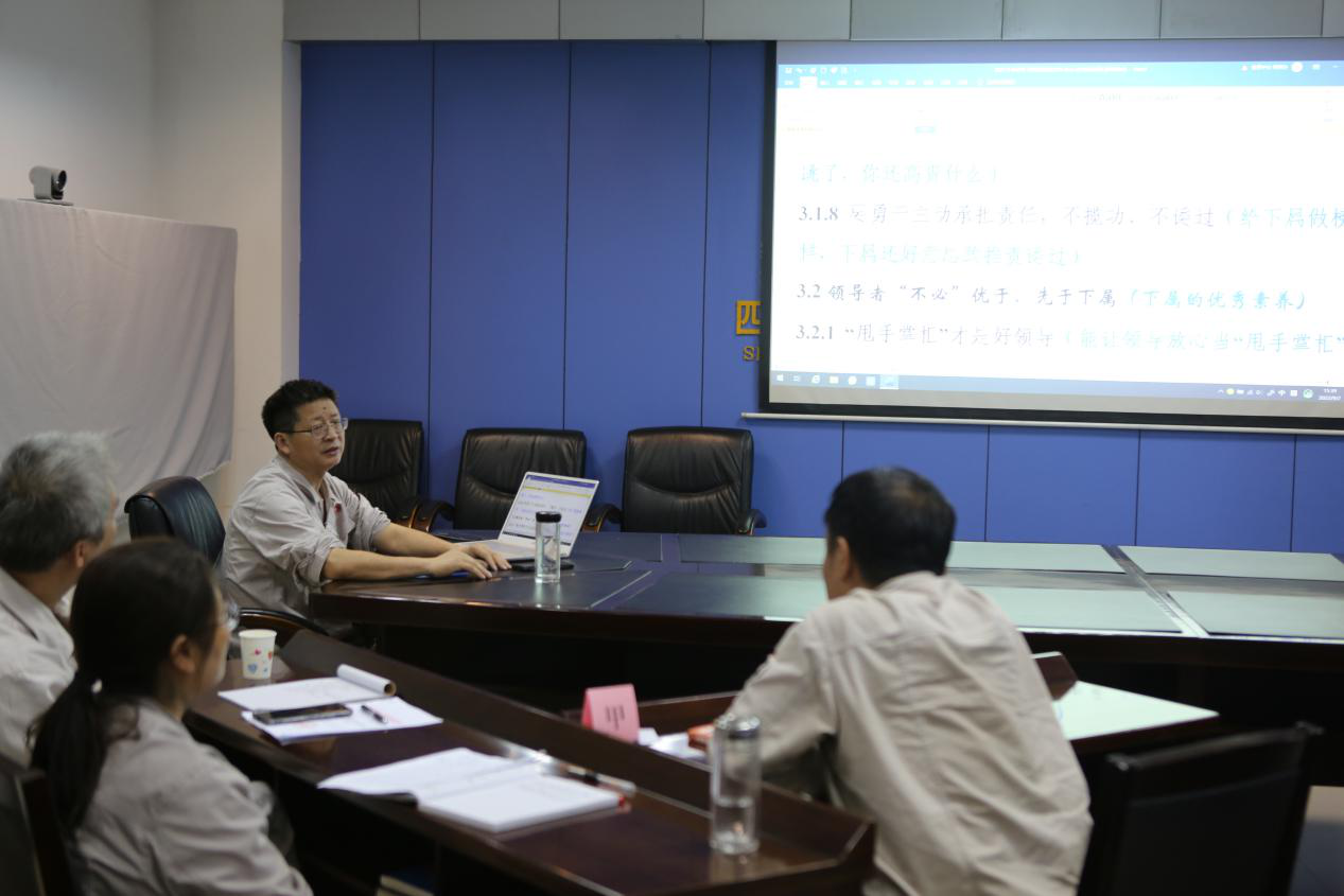 會議以分組討論和集中講解兩種方式進行,中層正職人員以小組討論方式交叉解答本組人員問題、分享學(xué)習(xí)心得。唐華應(yīng)結(jié)合書本內(nèi)容和管理經(jīng)驗重點解讀“辯證處理好‘授權(quán)’的幾點關(guān)系、領(lǐng)導(dǎo)與下屬相互成就的典型方式二元性、領(lǐng)導(dǎo)者基本素質(zhì)二重性”三個內(nèi)容,綜合分析領(lǐng)導(dǎo)和下屬在管理過程中應(yīng)該具備的管理素養(yǎng)和思維。唐華應(yīng)指出:管理是通過管人和管事解決浪費和效率不高的問題,任何人都是領(lǐng)導(dǎo)和下屬,因此都會參與到管理與被管理?!笆跈?quán)”是一種提升管理效率的途徑,因此各級領(lǐng)導(dǎo)(管理人員)都要做好向下屬授權(quán)之事,對應(yīng)的,任何一個下屬都要做好接受領(lǐng)導(dǎo)“授權(quán)”的準(zhǔn)備。