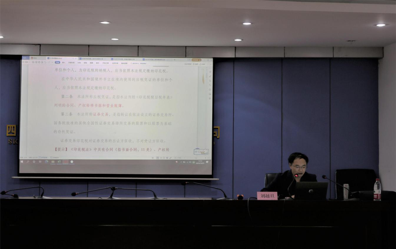 會(huì)上,劉越旦針對(duì)公司目前業(yè)務(wù)涉及內(nèi)容、遇到的難點(diǎn)以及當(dāng)前申報(bào)模式變化等相關(guān)問題,分別從法律條文、合同簽訂、印花稅申報(bào)等幾個(gè)方面講解了《印花稅法》,并結(jié)合公司實(shí)際業(yè)務(wù)及困難作出相應(yīng)指導(dǎo),對(duì)需要關(guān)注和完善的事項(xiàng)進(jìn)行了特別強(qiáng)調(diào)。同時(shí)就學(xué)員關(guān)心的問題進(jìn)行了現(xiàn)場(chǎng)答疑解惑。