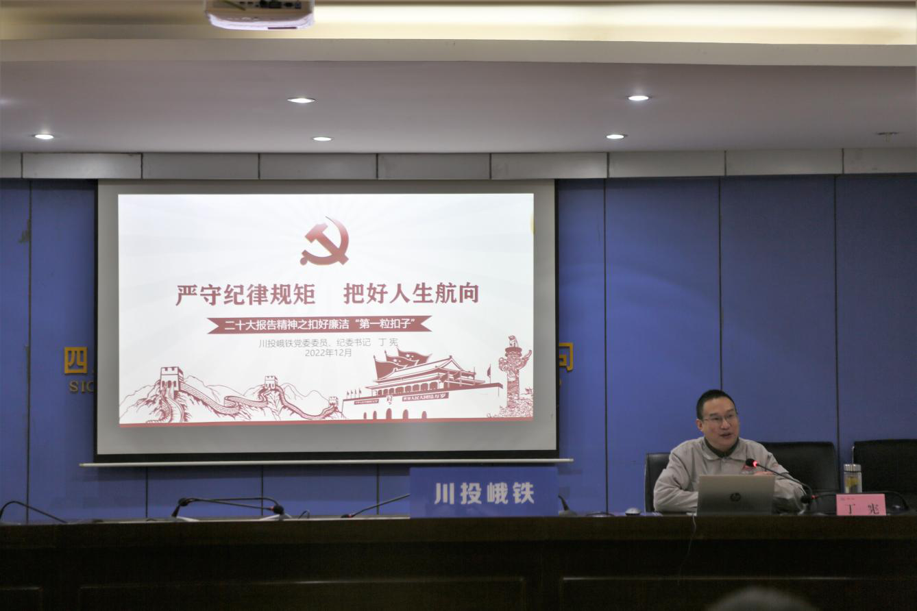 為深入學(xué)習(xí)宣傳貫徹黨的二十大精神,積極踐行習(xí)近平總書記對廣大青年提出的“立志做有理想、敢擔當、能吃苦、肯奮斗的新時代好青年”的殷切希望,扣好年輕干部廉潔“第一??圩印?。12月13日上午,川投峨鐵公司黨委委員、紀委書記丁憲在1011會議室作題為“嚴守紀律規(guī)矩 把好人生航向”的廉潔黨課,公司團員青年、黨員共計43人參會。