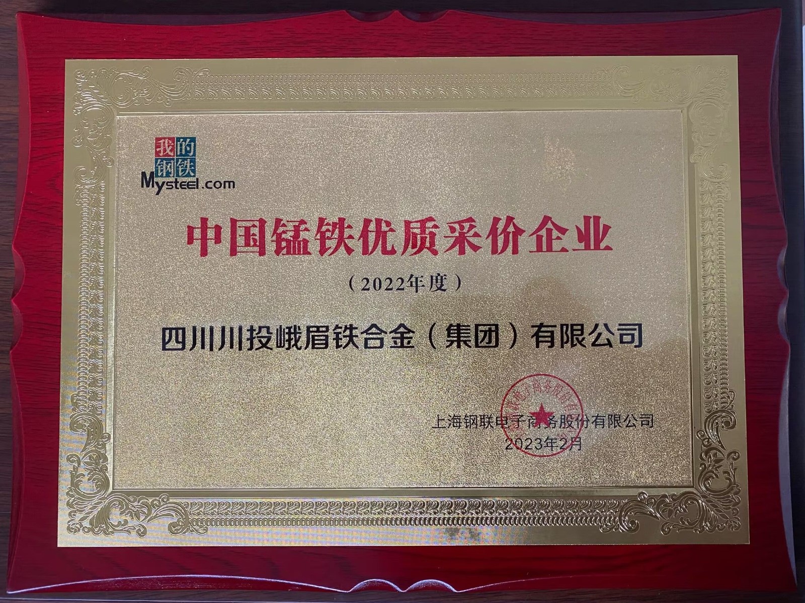 近日,在由上海鋼聯(lián)電子商務(wù)股份有限公司(我的鋼鐵網(wǎng))主辦,中國(guó)鐵合金工業(yè)協(xié)會(huì)協(xié)辦的“2022年(第十三屆)中國(guó)鐵合金產(chǎn)業(yè)大會(huì)”上,川投峨鐵公司獲“2022年度中國(guó)錳鐵優(yōu)質(zhì)采價(jià)企業(yè)”和“2022年度中國(guó)硅錳優(yōu)質(zhì)采價(jià)企業(yè)”兩項(xiàng)榮譽(yù)。