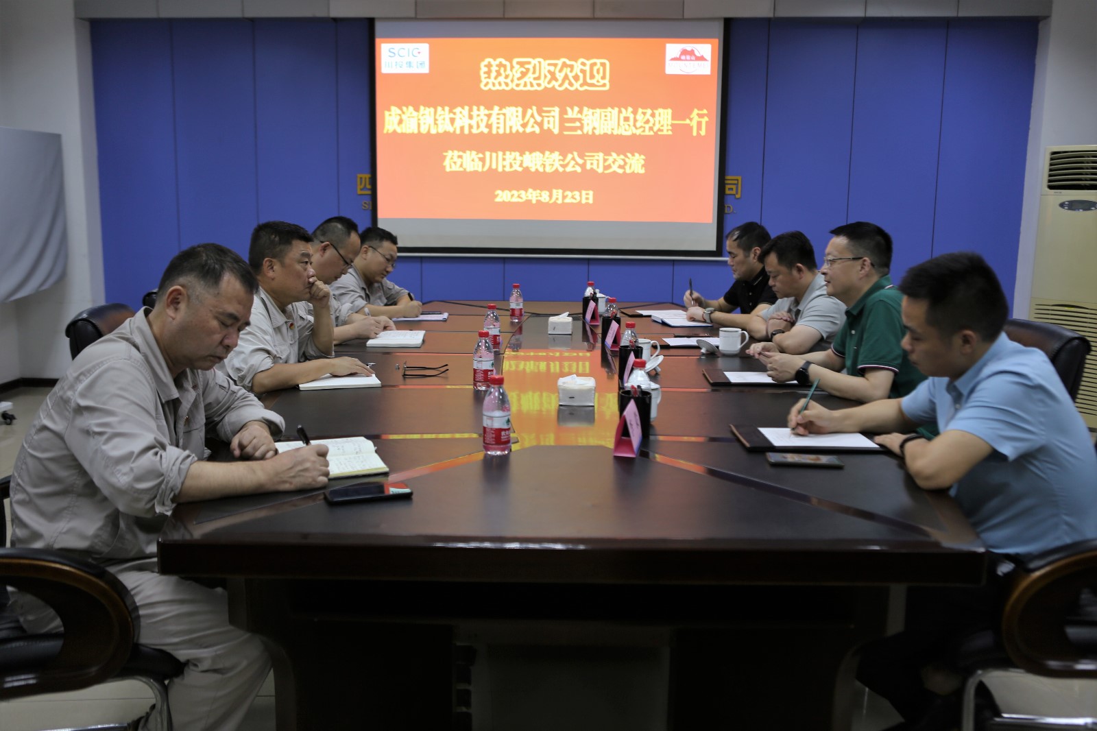 近日,成渝釩鈦科技有限公司副總經(jīng)理蘭鋼一行4人到訪川投峨鐵公司,川投峨鐵公司黨委副書記、總經(jīng)理陳新龍在公司908會議室接待了來訪客人。