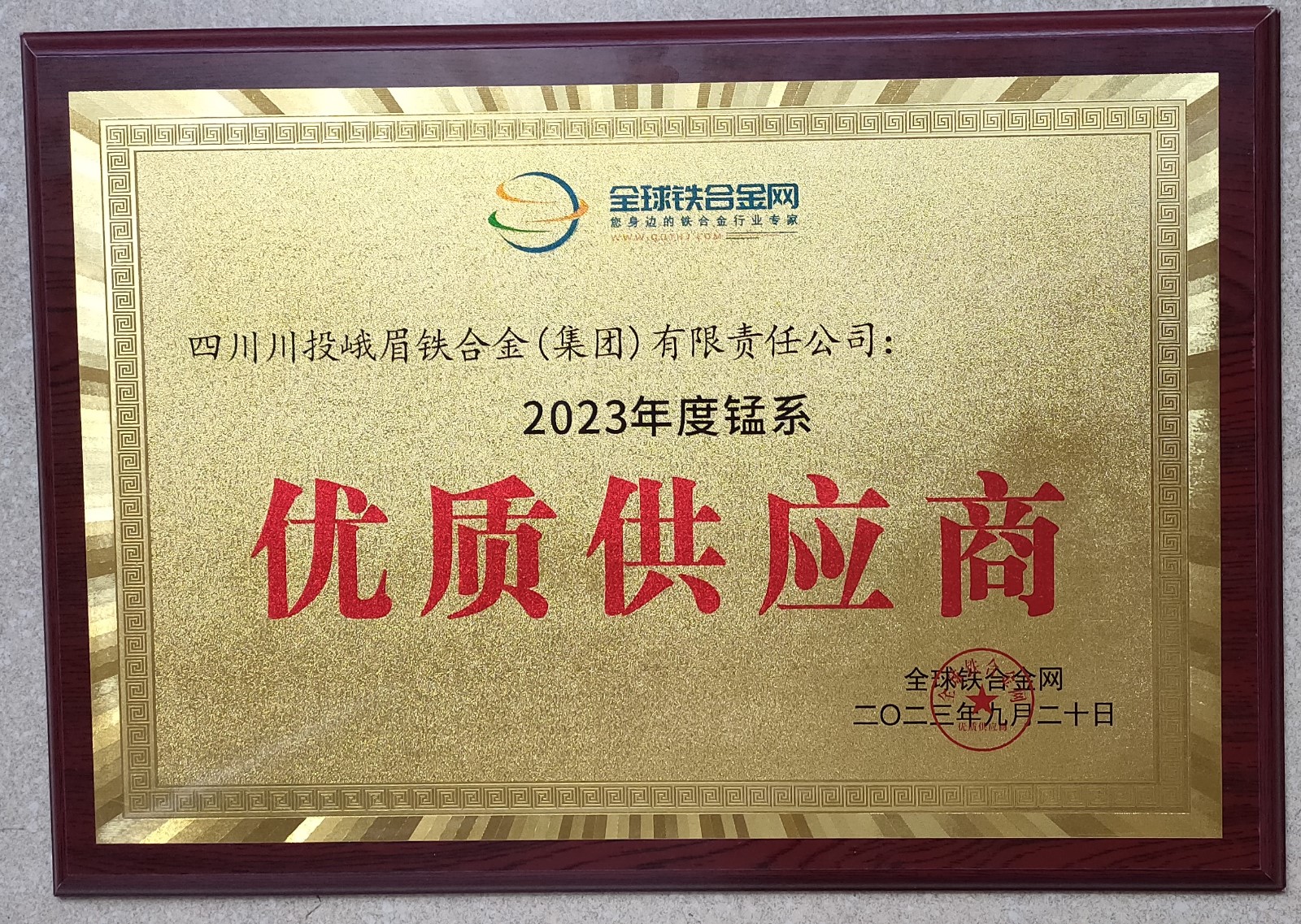 9月22日,在2023年錳產(chǎn)業(yè)發(fā)展高峰論壇上,川投峨鐵公司榮獲“全球鐵合金網(wǎng)2023年度錳系優(yōu)質供應商”獎牌。