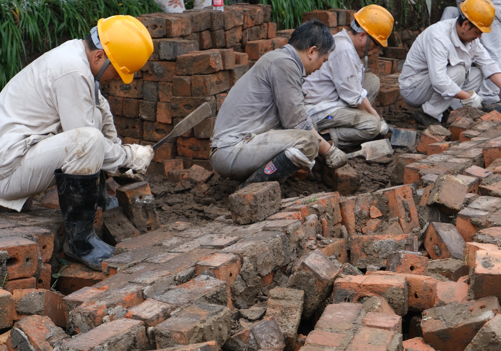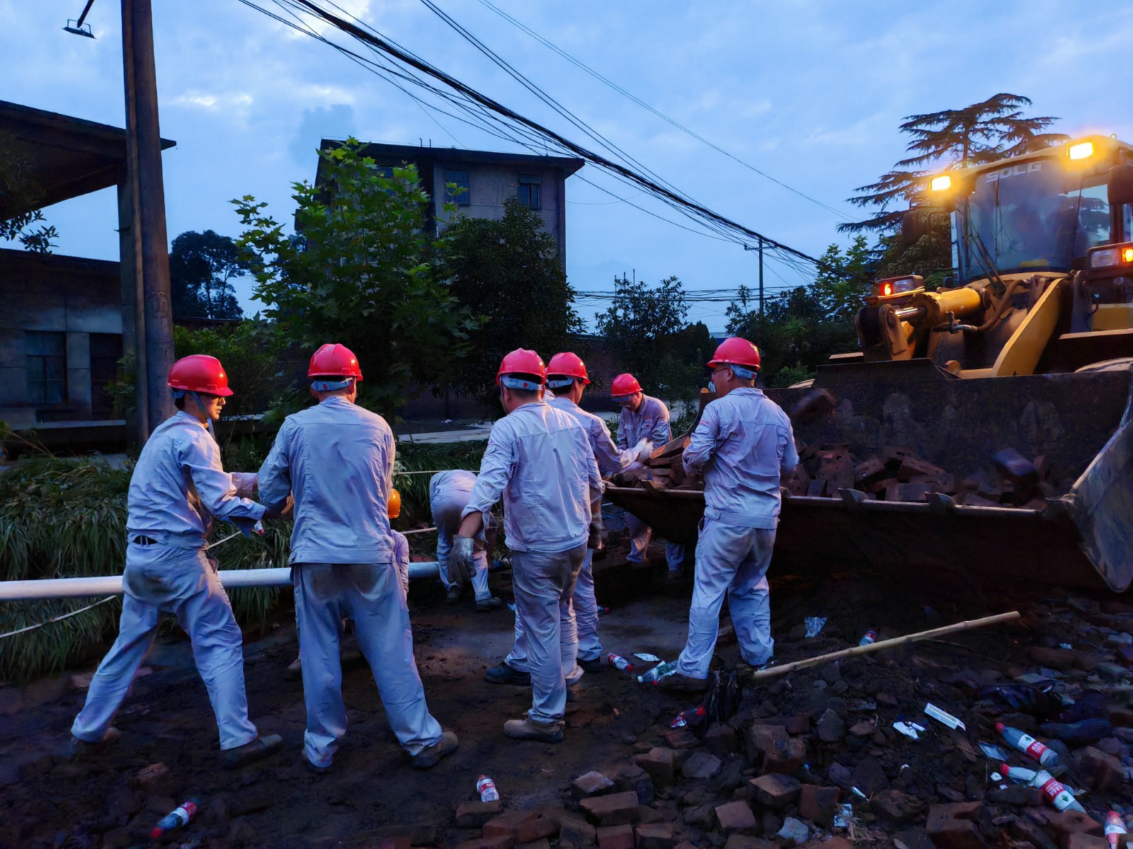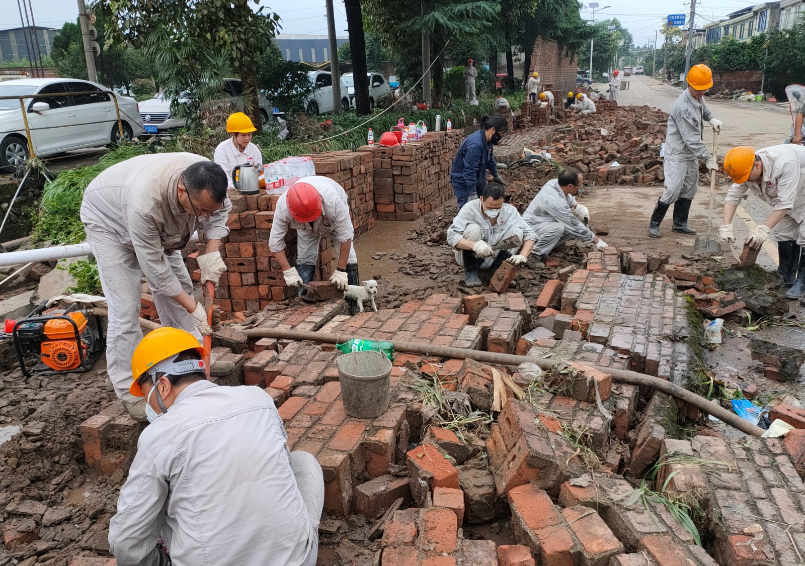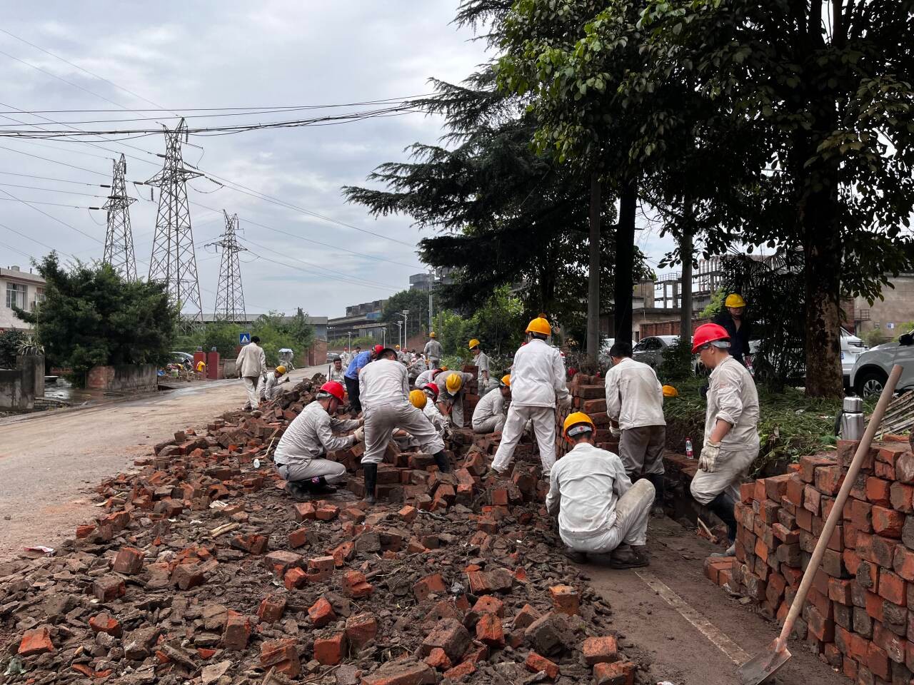 公司職工發(fā)揚(yáng)吃苦耐勞、自力更生的良好工作作風(fēng),齊心協(xié)力、不怕苦累,頑抗驕陽,鏖戰(zhàn)數(shù)十時(shí),終于在當(dāng)天21時(shí)基本完成了倒塌圍墻第一路段的廢磚清理回收。剩余廢磚已拉回廠區(qū),將在后續(xù)幾天突擊完成清收工作。至此,蘇九路交通已全部恢復(fù)暢通。