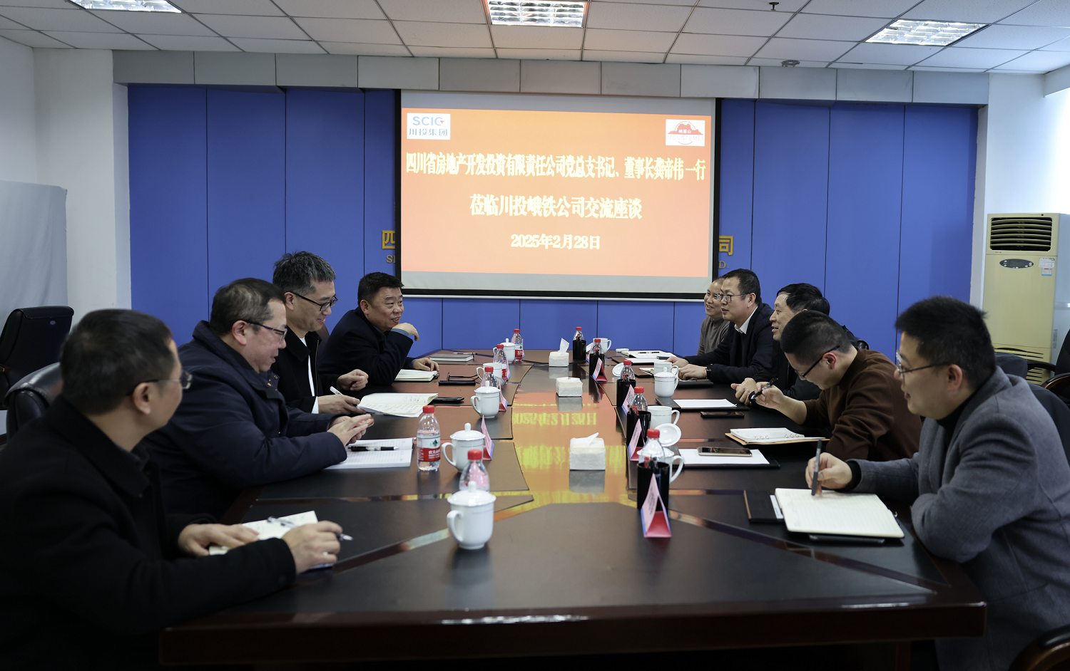 2月28日,四川省房地產(chǎn)開發(fā)投資有限責(zé)任公司黨總支書記、董事長龔帝偉一行5人到訪公司,川投峨鐵公司黨委書記、董事長李勝章參加交流座談。